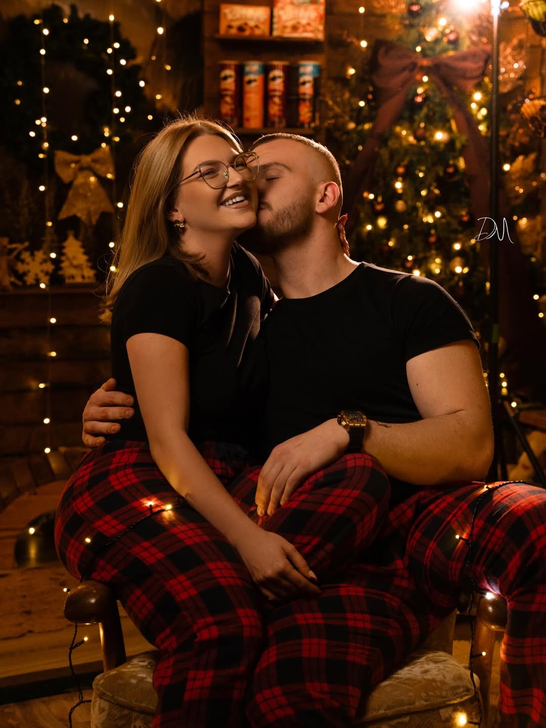 Në një set fotografik në Instagram, ajo shfaqet krah partnerit të saj, të veshur me pizhama të kuqe me katrorë, tipike për Krishtlindjet, ndërsa partneri e puth në faqe.