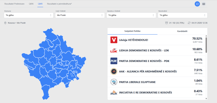 Rezultatet e reja konfirmojnë trendin e pandryshuar të dominimit absolut të Lëvizjes Vetëvendosje, ndërkohë që vërehen ndryshime të vogla në shifrat e partive të tjera.