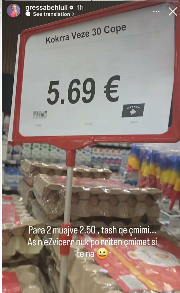 “Para 2 muajve 2.50, tash që çmimi as në Zvicër nuk po rriten çmimet si te ne”, ka shkruar ajo krahas këtij reagimi, transmeton IndeksOnline.