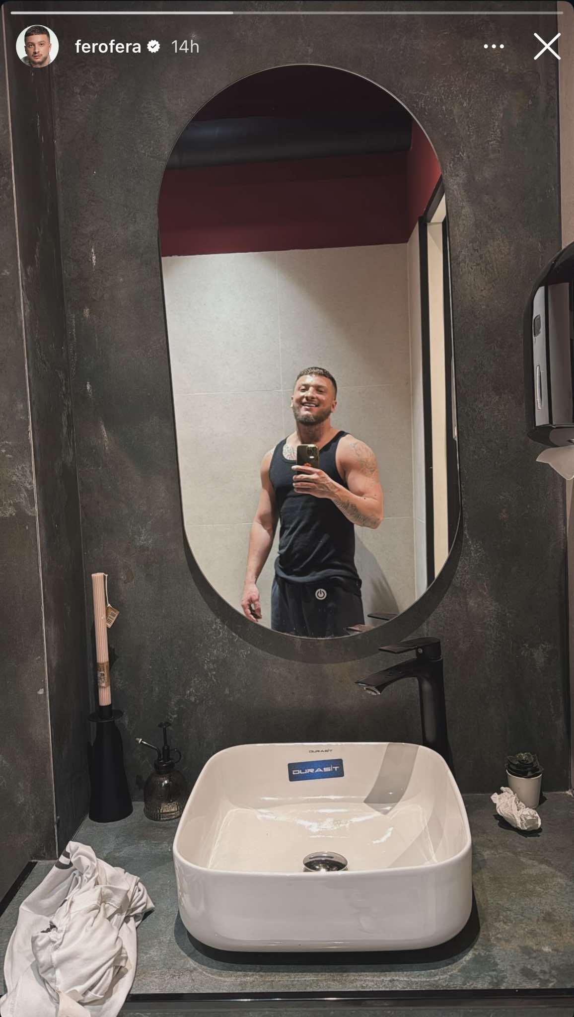 Ai është fotografuar në banjo para pasqyrës, ku vihen në pah muskujt e tij, duke reflektuar angazhimin e tij në stërvitje dhe kujdesin për trupin, shkruan “Kosovarja”.