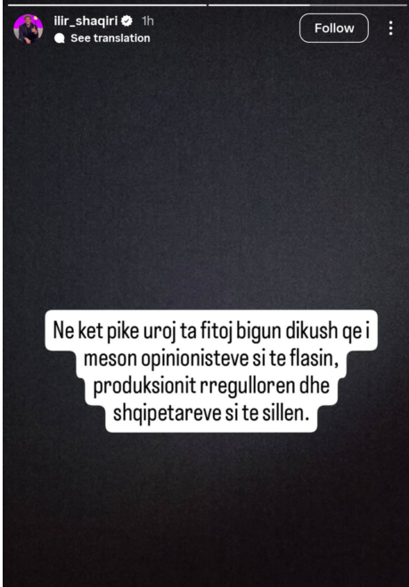 “Në këtë pikë uroj ta fitojë Bigun dikush që i mëson opinionistëve si të flasin, produksionit rregulloren dhe shqiptarëve si të sillen,” – ka deklaruar Shaqiri.