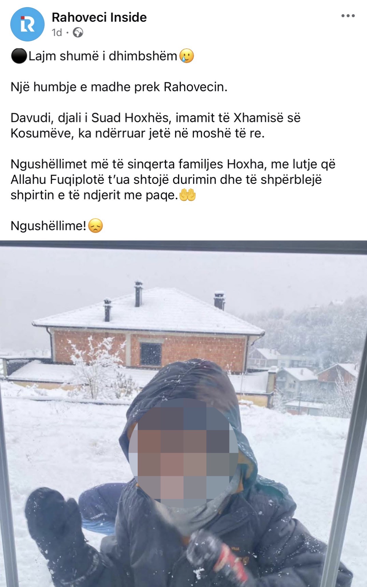 Sipas portalit “Rahoveci Inside”, ai ishte djali i imamit të Xhamisë së Kosumëve, Suad Hoxha.