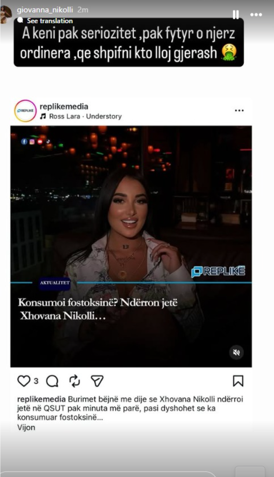 A keni pak seriozitet, pak fytyrë o njerëz ordinera. Që shpifni këto lloj gjërash”, shkruan Xhovana Nikolli, duke i bërë thirrje publikut të mos përhapë informacion të pavërtetë.