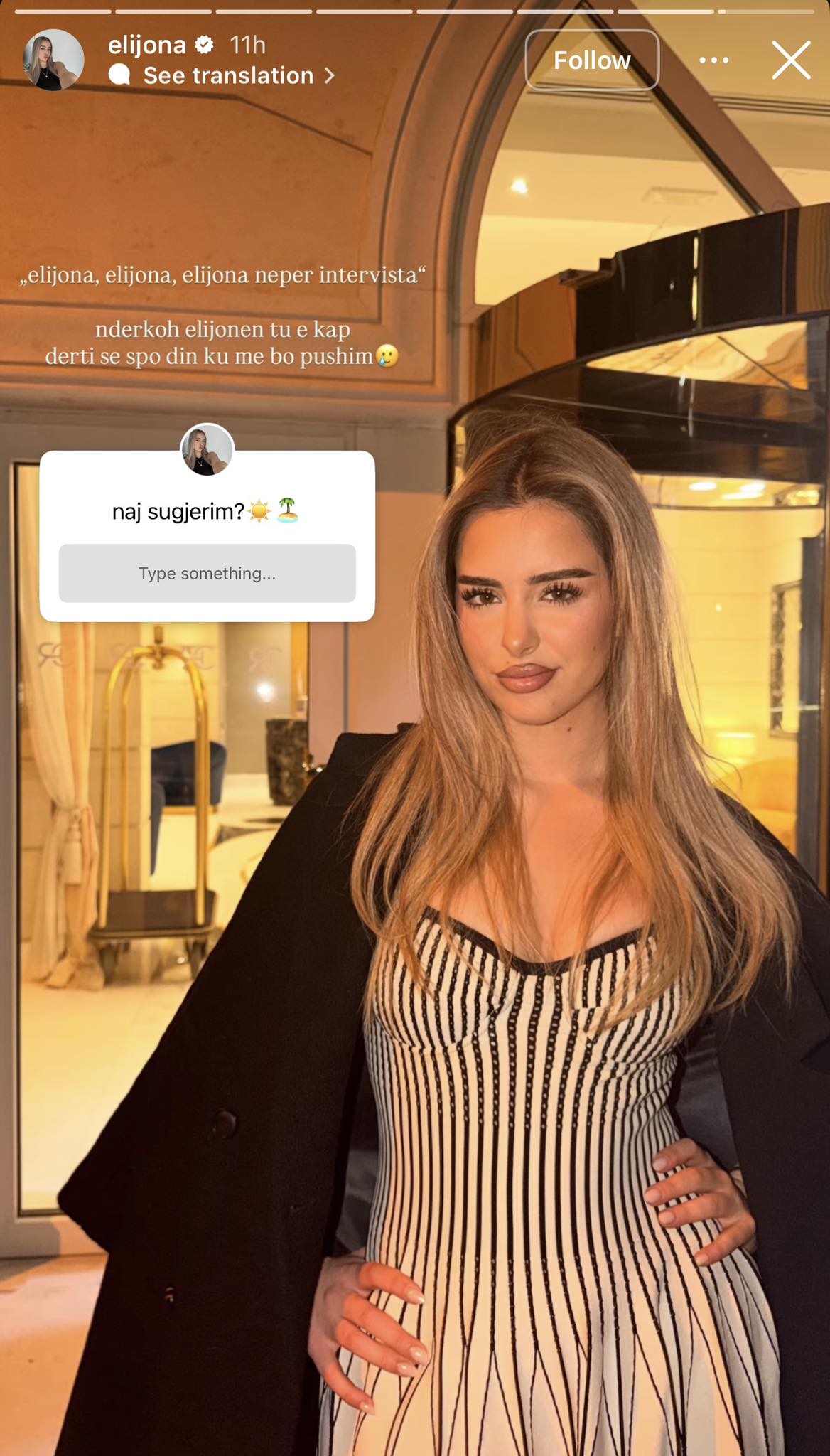 Në pyetësorin e publikuar, Elijona ka kërkuar sugjerime se ku mund të kalojë pushimet. Ajo duket se po mendon për një destinacion të ri për të pushuar pas periudhës së angazhimeve dhe ekspozimit publik gjatë qëndrimit në reality show, shkruan “Kosovarja”.
