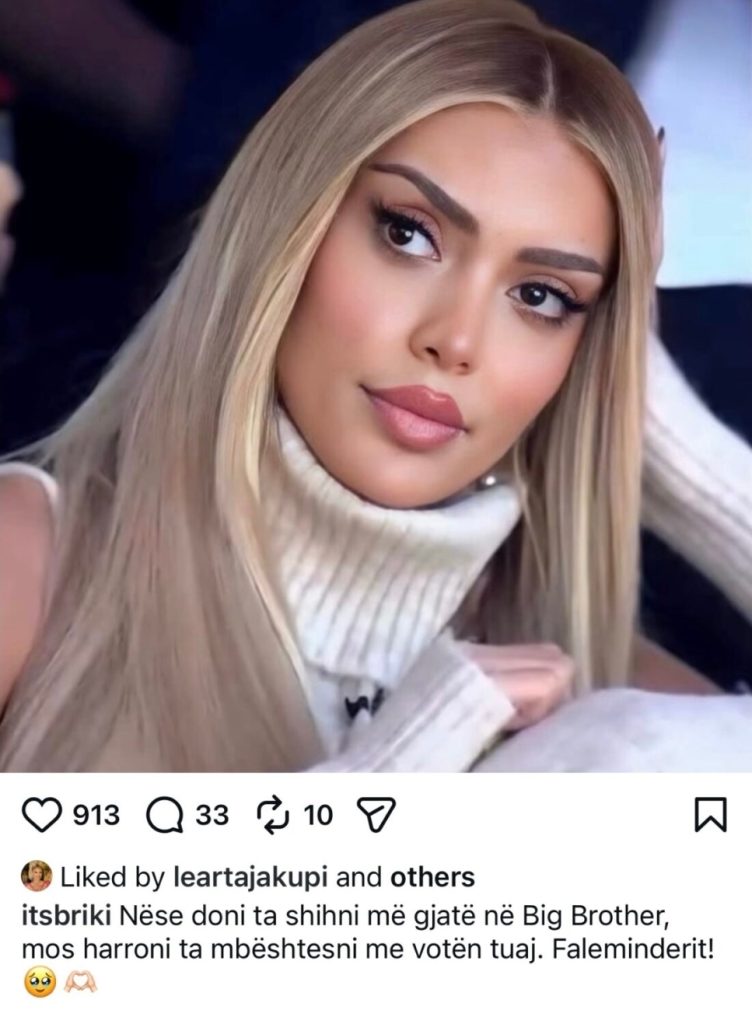 Ndërkohë, përmes rrjeteve sociale është bërë një thirrje nga familjarët e Brikenës, të cilët u kanë kërkuar ndjekësve dhe mbështetësve të saj që ta votojnë për ta ndihmuar të vazhdojë rrugëtimin në këtë format.