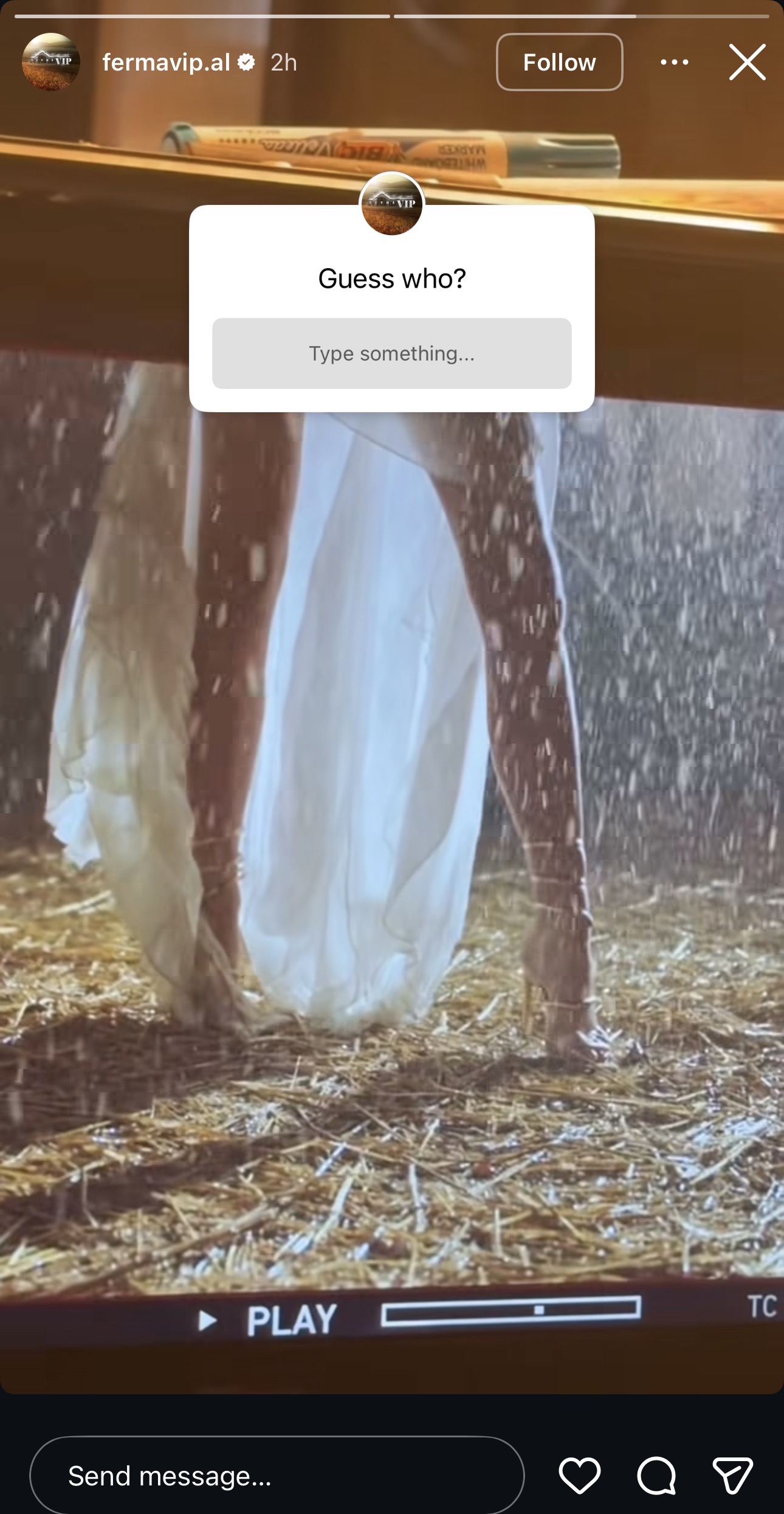 Në faqen zyrtare në Instagram, ata kanë ndarë një video të shkurtër nga xhirimet, ku shfaqen vetëm këmbët e një vajze të veshur me fustan të bardhë dhe taka, teksa qëndron mbi kashtë.