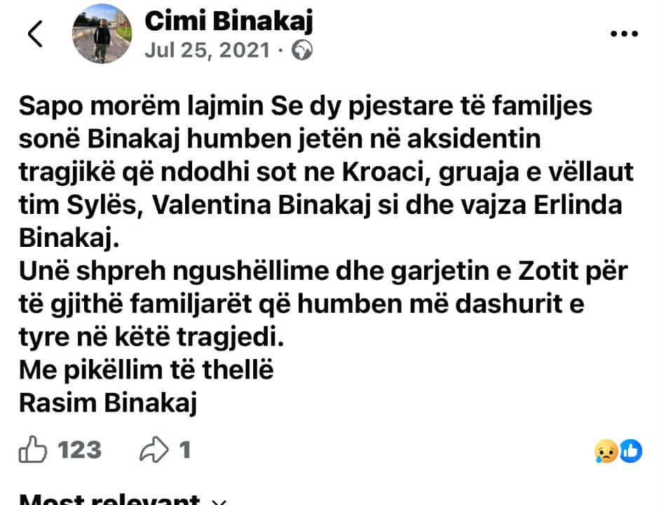 Rasim Binakaj, 38-vjeçari që u vra nga arma e zjarrit në Gjakovë, është xhaxhai i ish-finalistes së Big Brother VIP Kosova 4, Elijona Binakaj.