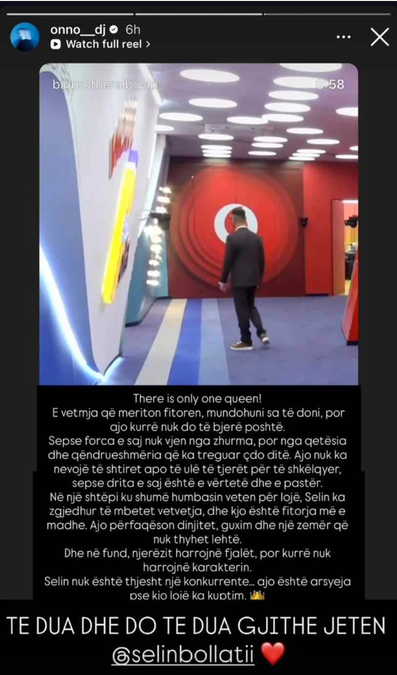 Ai e cilësoi motrën e tij si “mbretëreshën e vetme” dhe fituesen e vërtetë të këtij formati, duke theksuar se forca e saj nuk vjen nga zhurma apo rivaliteti, por nga qetësia dhe qëndrueshmëria që ka treguar çdo ditë brenda shtëpisë.