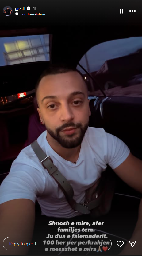 “Shëndoshë e mirë, afër familjes time. Ju dua e faleminderit 100 herë për përkrahjen e mesazhet e mira”, u shpreh ai në InstaStory.
