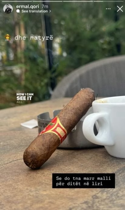 Në Instagram ai ka postuar një foto ku shfaqet një moment relaksi me puro dhe kafe, Ermal Qori shoqëron imazhin me një mesazh që nuk kaloi pa u vënë re: “Se do t’na marr malli për ditët në liri”.