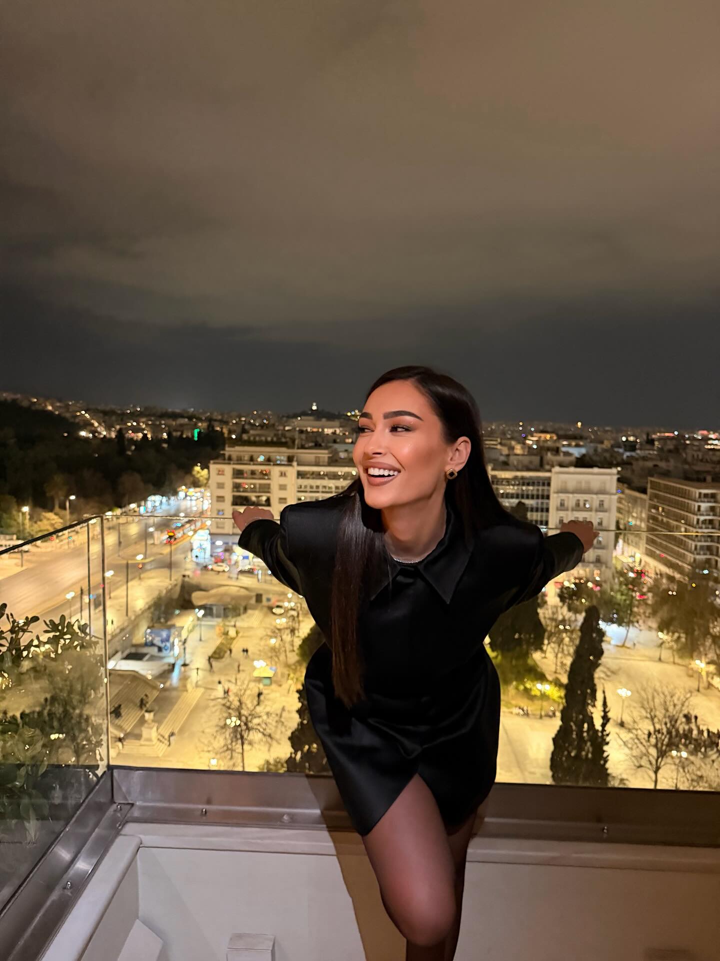 Ajo shfaqet e veshur me të zeza duke i dhënë pamjes së saj një efekt tërheqës dhe magjik.