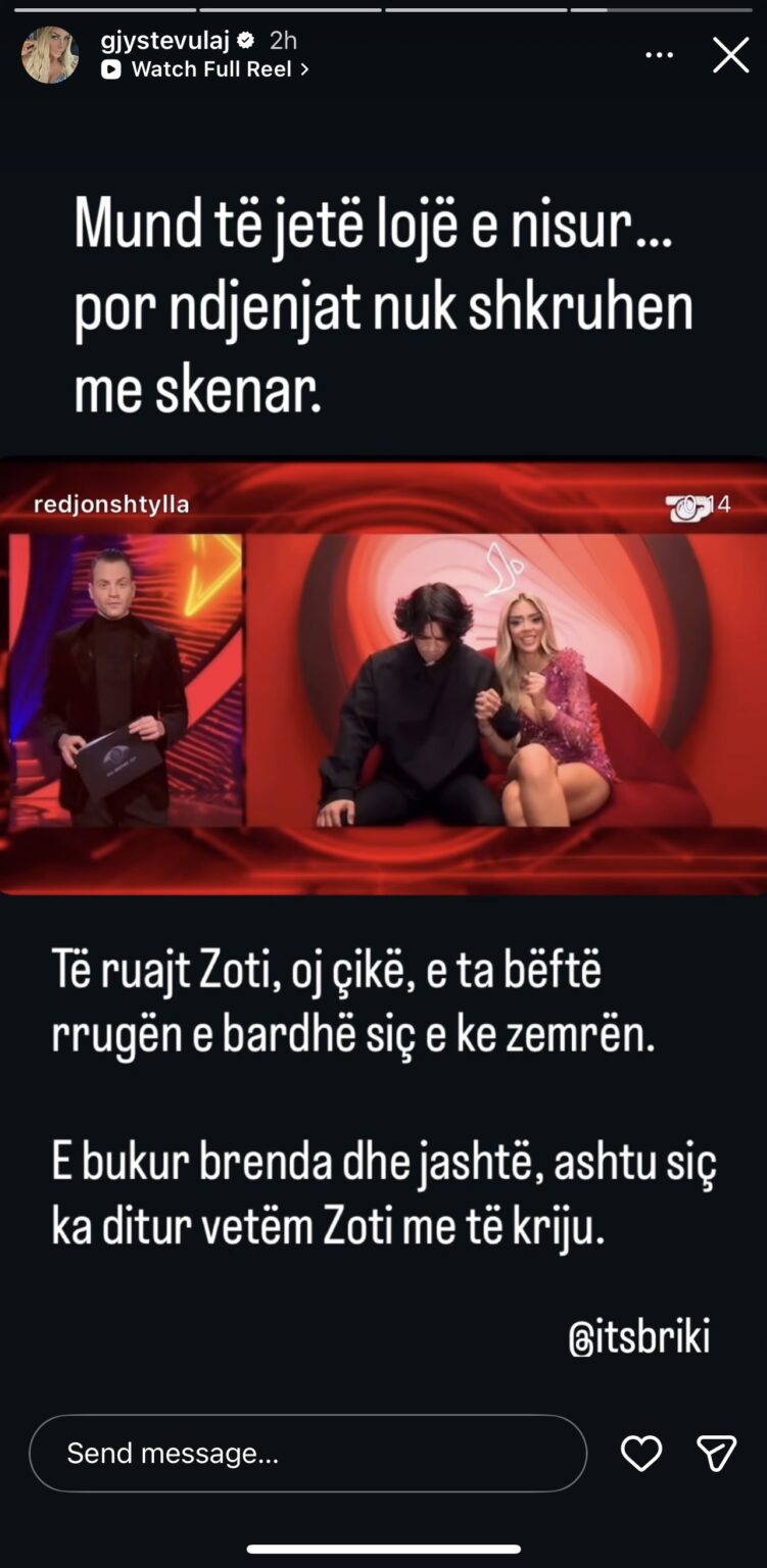 “Mund të ketë nisur si lojë… por ndjenjat nuk shkruhen me skenar”, ka shkruar ajo.