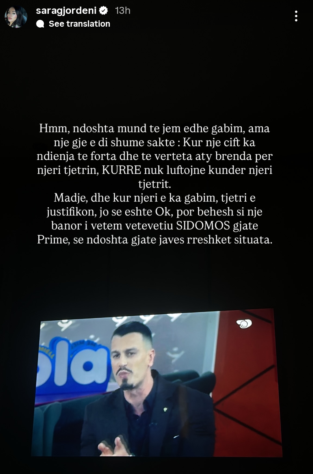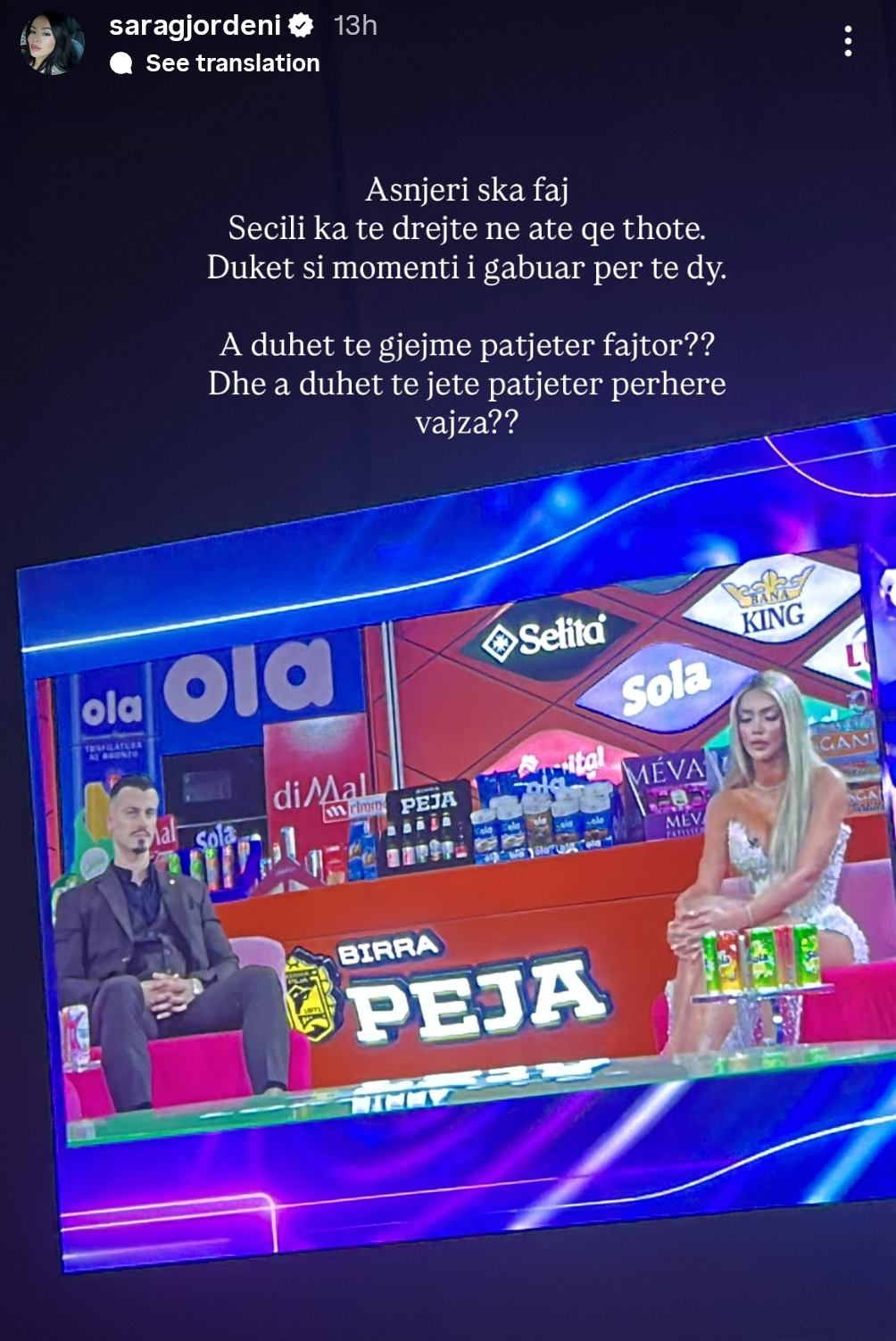 Kjo qasje ka ngjallur reagimin e ashpër të ish-banores Sara Gjordeni. Përmes një serie postimesh në Instagram, ajo ka dalë hapur në mbrojtje të Brikenës, duke theksuar një standard të dyfishtë që sipas saj aplikohet vazhdimisht në formate të tilla.