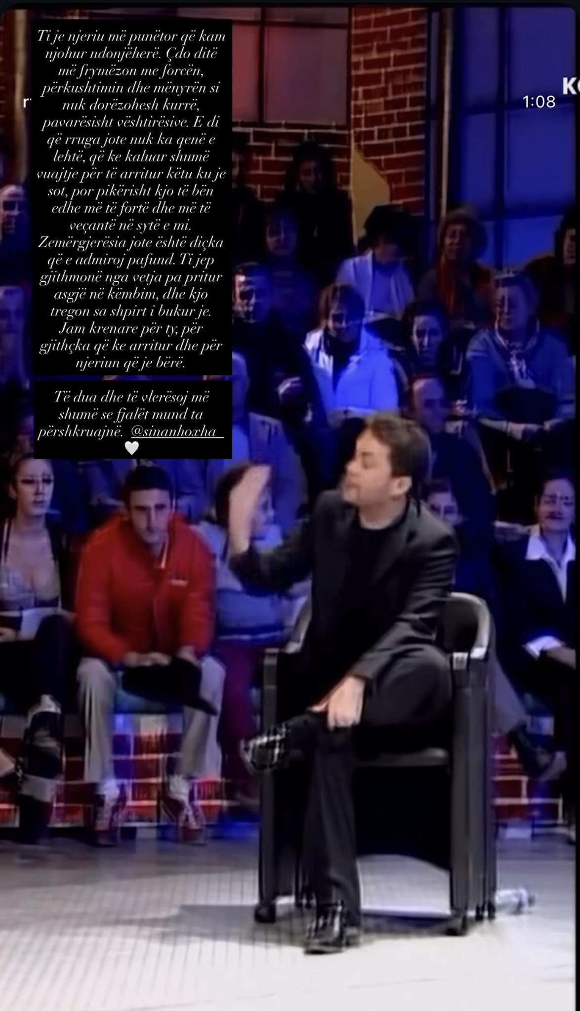 Andrra Destani ka ndarë një postim emocional në rrjetet sociale, kushtuar bashkëshortit të saj, këngëtarit Sinan Hoxha. Ajo ka publikuar një video nga një intervistë e mëhershme e tij, duke e shoqëruar me një dedikim personal.