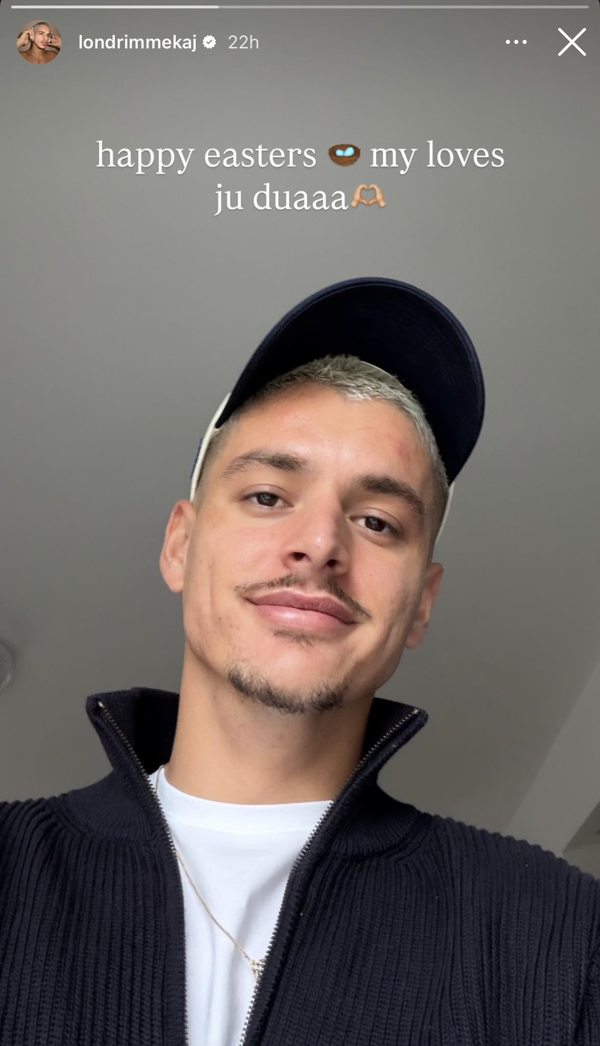 Londrim Mekaj, fituesi i “Big Brother VIP Kosova”, ka ndarë sot një mesazh urimi me rastin e Pashkëve katolike. Ai ka publikuar një fotografi në “Instastory”, përmes së cilës u ka uruar festën besimtarëve katolikë.