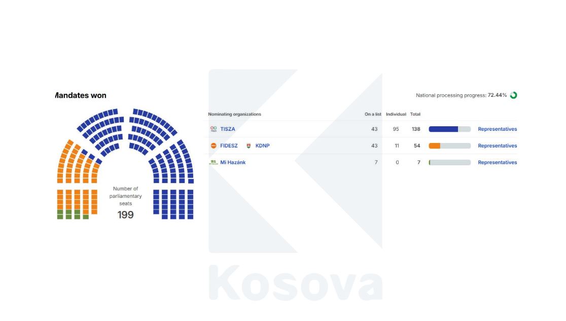 Kur janë numëruar rreth 70% të votave, opozita ka 138 ulëse në Kuvend, ndërsa Victor Orban vetëm 54.