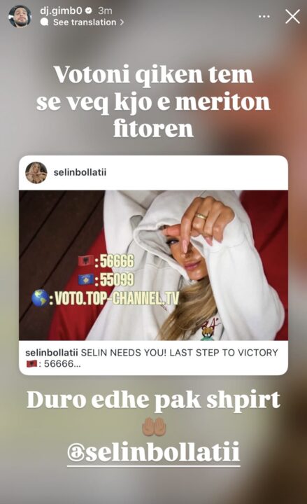 Ai ka bërë një postim në “Instastory” ku u ka bërë thirrje të gjithëve që të mbështesin finalisten që të shpallet fituese e këtij edicioni të pestë të reality showt.