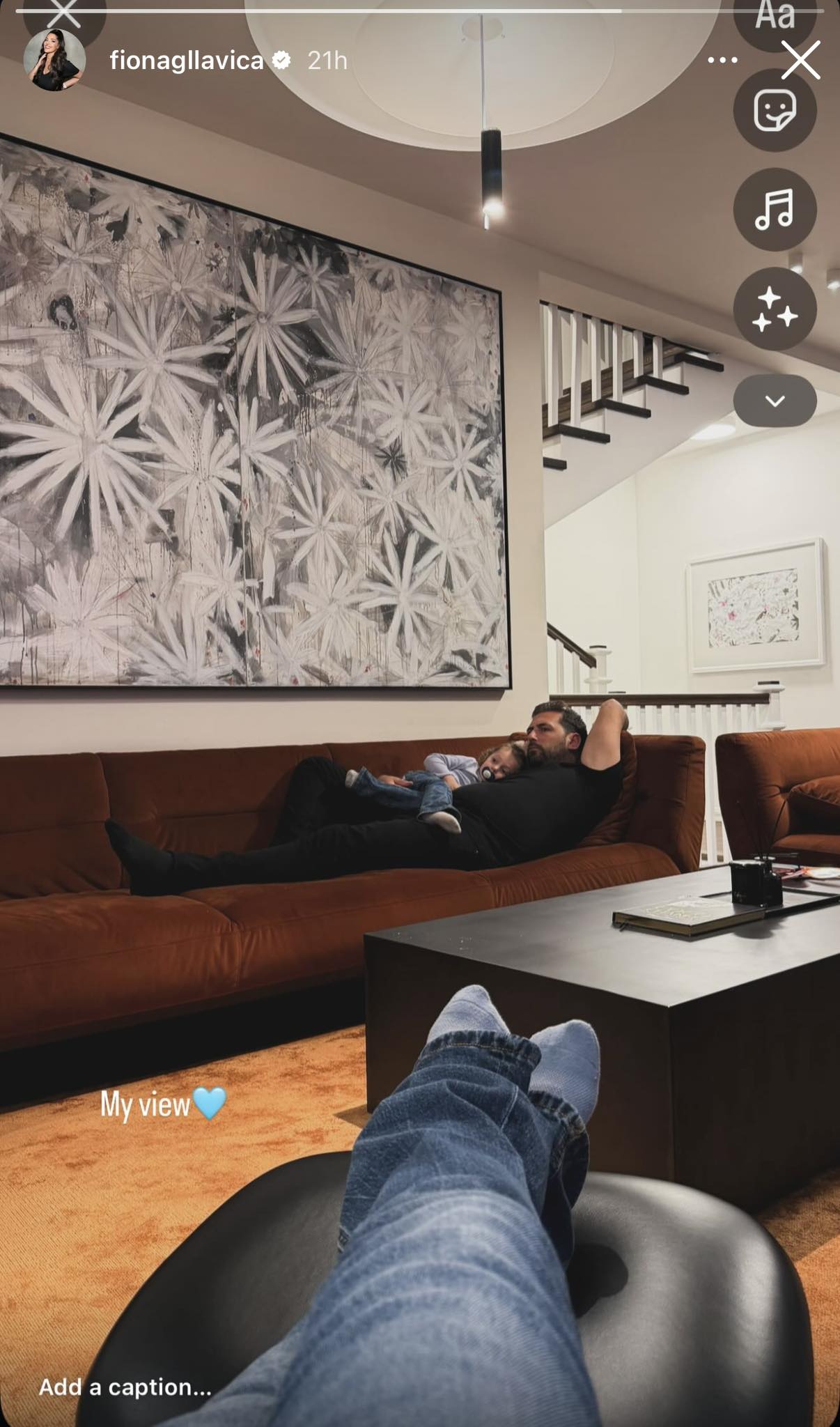 Në një postim në Instastory, ajo ka publikuar një fotografi ku shihet bashkëshorti i saj duke mbajtur në krahë vajzën e tyre, shkruan “Kosovarja”.