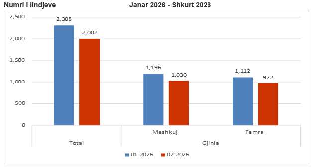 Në shkurt 2026 lindën më shumë meshkuj se femra