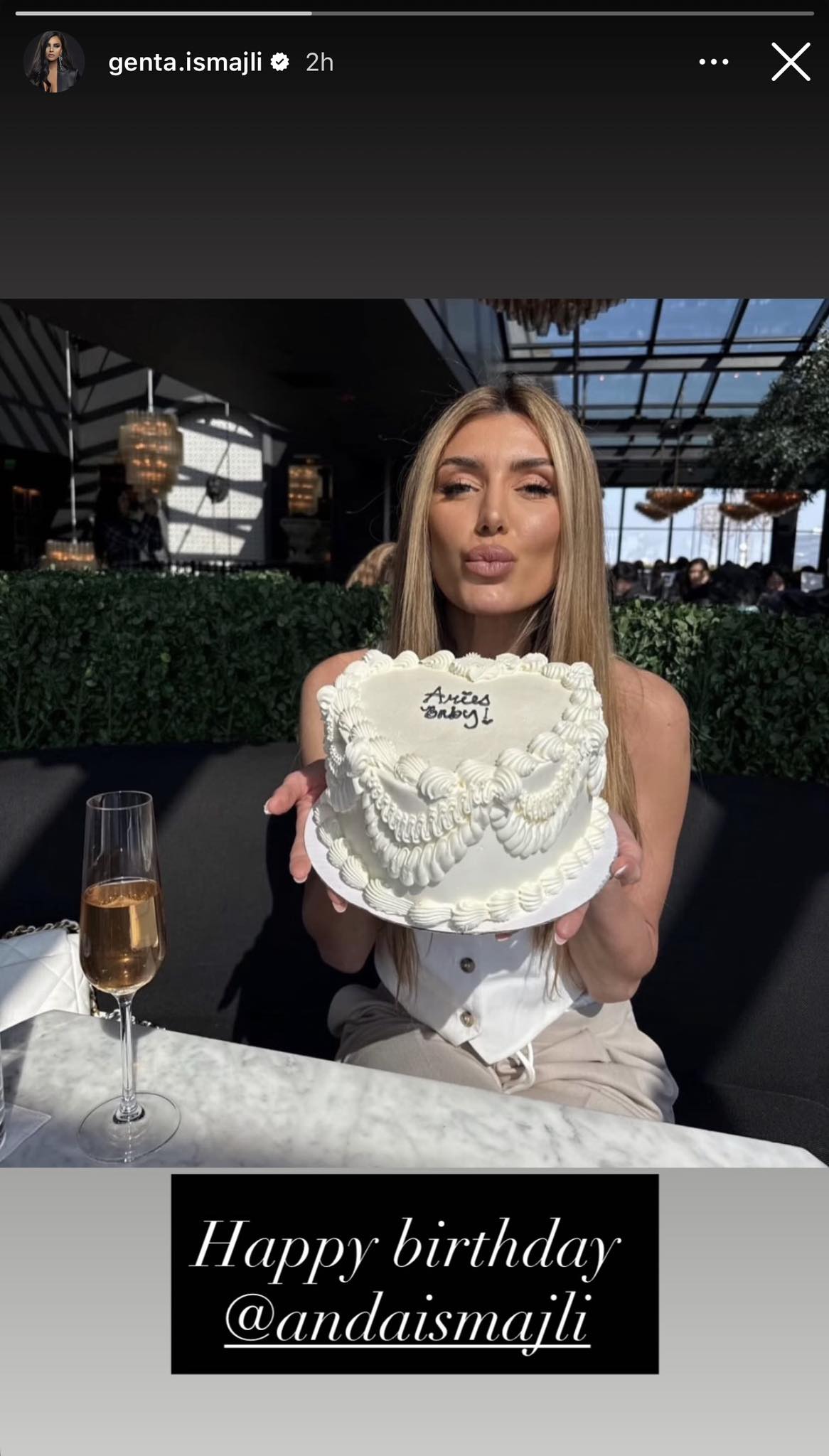 Në imazh, Anda shihet duke mbajtur tortën e ditëlindjes, teksa paraqitet me një pamje të kuruar dhe elegante, shkruan “Kosovarja”.