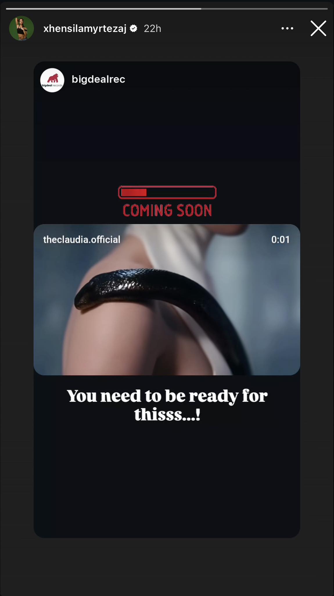 Në pamjet e publikuara, ajo shfaqet në një skenë artistike ku një gjarpër lëviz mbi trupin e saj, duke i dhënë klipit një atmosferë misterioze dhe të guximshme, shkruan “Kosovarja”.