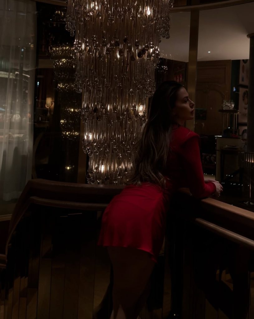 Në fotografitë e publikuara, ajo pozon pranë një ndërtese ikonike, ndërsa ndriçimi i natës i jep edhe më shumë dramë pamjes së saj, raporton ORAinfo.
