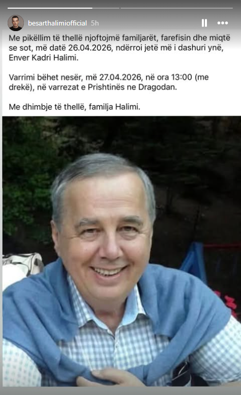 Artisti Besart Halimi ka njoftuar se ka vdekur babai I tij, Enver Kadri Halimi.